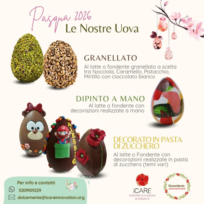 Sembra sia passata un’eternità dal periodo natalizio, e invece sono trascorsi meno di 70 giorni. Eppure l’attivissima macchina operativa del laboratorio di pasticceria sociale (così come quella relativa ad ogni singola progettualità di iCare) non s’è mai fermata in questo tempo, fino ad arrivare, appunto, alla produzione delle colombe artigianali e delle uova di cioccolato di questo periodo. Ragazzi, giovani, operatori e volontari di DolceMente hanno, dapprima, partecipato al Sigep World 2026 di Rimini, la kermesse internazionale della pasticceria, visitando i vari stand presenti per vedere, osservare e toccare con mano l’origine di tutti quei prodotti che, quotidianamente, utilizzano in cucina per preparare le varie delizie dolciarie. Dopo di che hanno partecipato ad una degustazione, durante un laboratorio sensoriale condiviso, condotto da Slow Food Valle Telesina, guidato un laboratorio di pasticceria per realizzare dei biscotti a tema “Carnevale” (a forma di mascherine) ai 90 piccoli alunni della Scuola dell’Infanzia “Antonio e Carlo Tammaro” di Civitella Licinio e di Cusano Mutri (BN) dell’Istituto Comprensivo “J.F. Kennedy” di Cusano Mutri, sfornato i dolci tipici di Carnevale e cioccolatini e semifreddi in occasione della Giornata Internazionale della Donna (così come, in questi giorni, realizzeranno la zeppole di San Giuseppe). Passando anche per l’allestimento di squisitissimi catering del gruppo, tra cui il finger food messo in piedi per la presentazione del Calendario Storico 2026 dell’Ente Culturale “San Lorenzo Martire – Don Nicola Vigliotti” di San Lorenzello (BN). Insomma il laboratorio di pasticceria sociale DolceMente cresce sempre di più ed è pronto a concretizzare ulteriormente il frutto di tanto lavoro e passione per essere sempre più creatori di comunità.